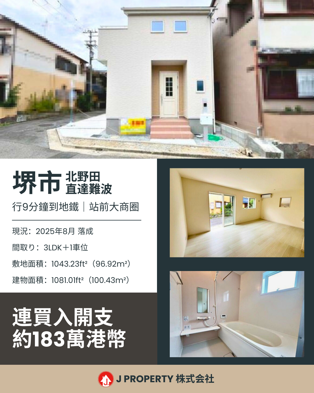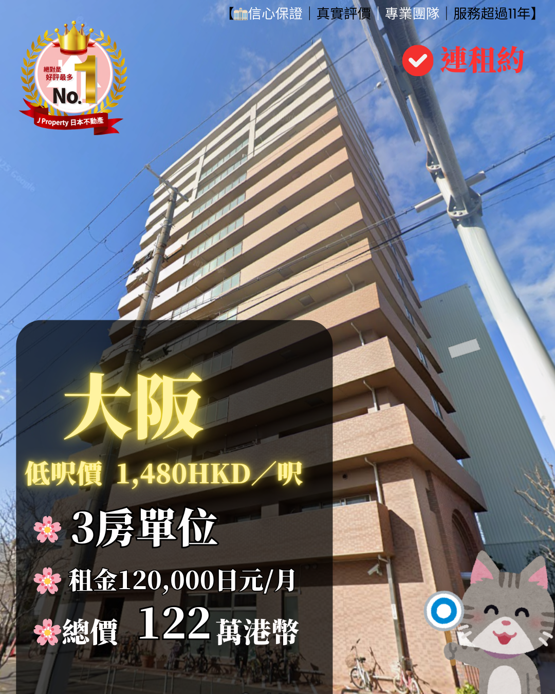 《大阪堺市》低呎價 HKD 1,480/呎|3LDK|即收租 ,連露台 900 呎大單位 ,總價只需 HKD 122 萬