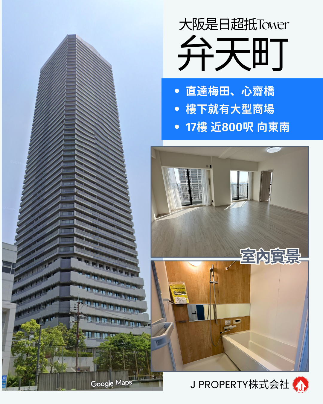 【#日本豪宅系列】 大阪頂級Tower,免震結構,高層26樓, 超豐富會所設施,地鐵連接大廈 ,直達夢洲/梅田/心齋橋
