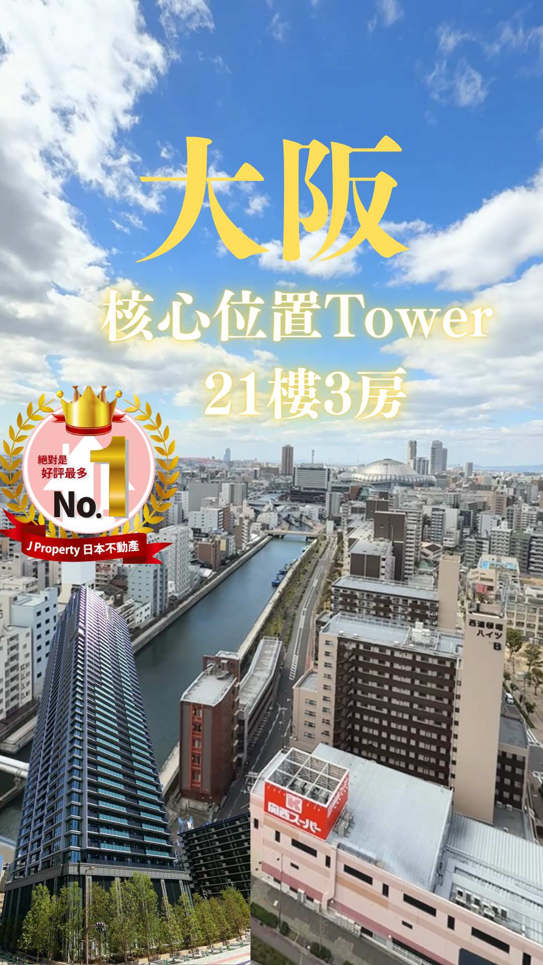 【大阪南堀江心臟】Tower mansion 21樓單位,雙地鐵站行4分鐘。3LDK,採光景觀絕佳,約728萬港幣即做業主