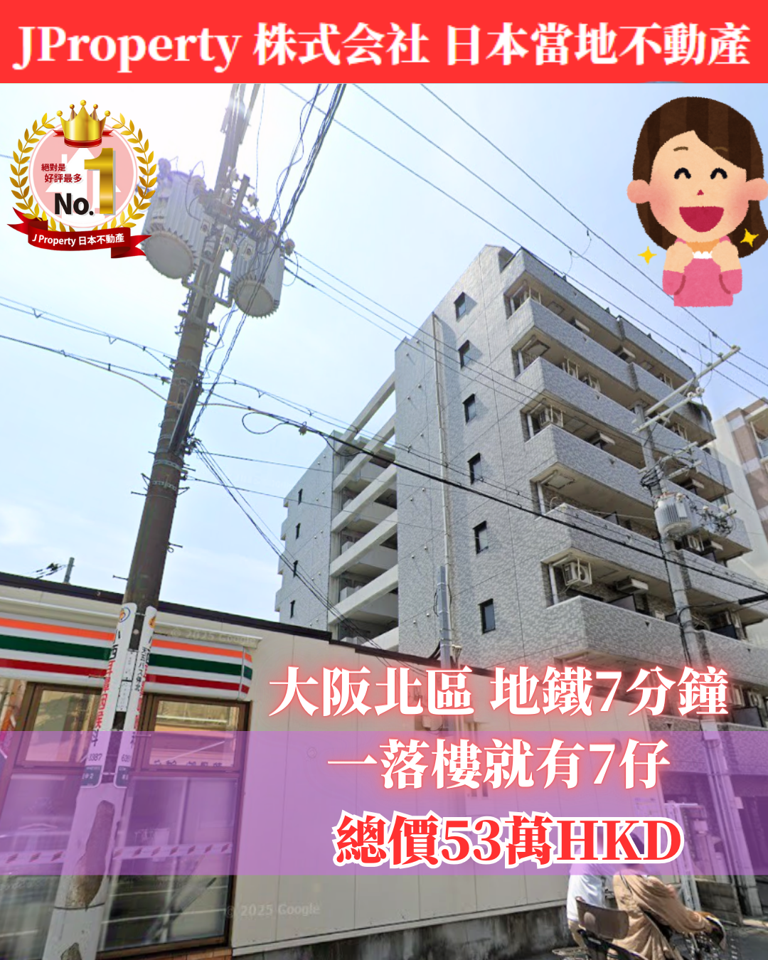 【J Property獲最多人稱老實的日本房產】【WhatsApp我拎回報表啦】 大阪北區,總價$53萬港幣即收租 ,地鐵7分梅田站,大廈行6分到日本最長商店街