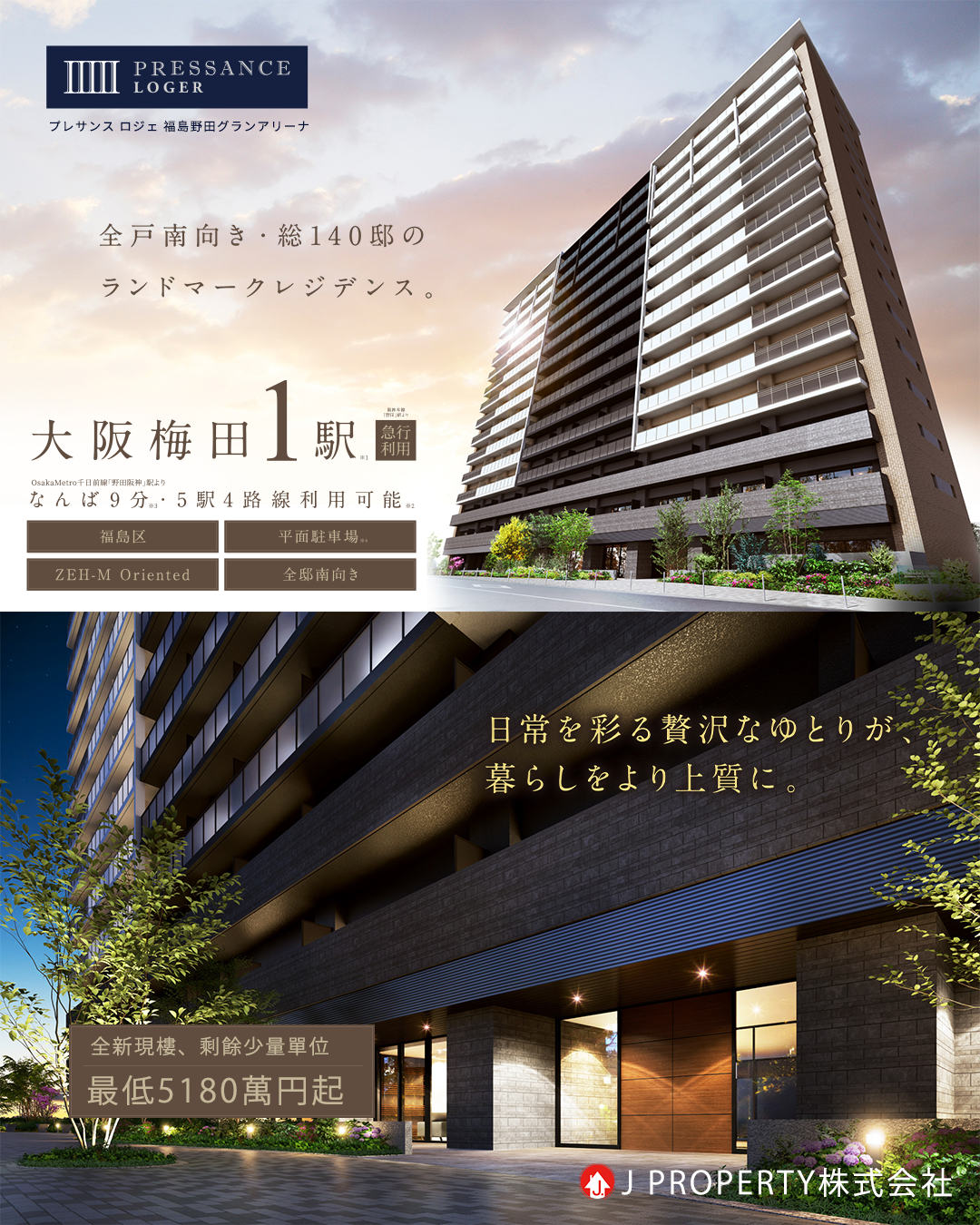 大阪全新高級住宅,升幅最高地段之一 一站即到梅田,僅剩餘少量單位發售, 全室南向,最低5180萬円起