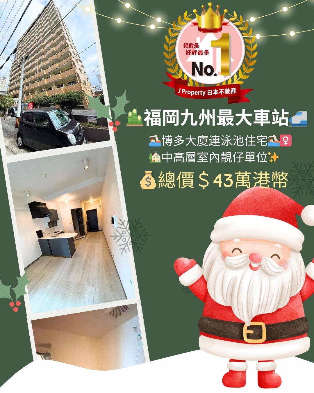【好評最多的日本物業公司】 福岡九州最大車站,博多大廈連泳池住宅 ,中高層室內靚仔單位 ,總價$43萬港幣即可入住