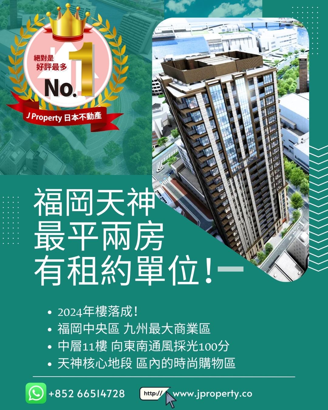 【最低匯率買日本樓你最醒】 天神最平,兩房有租約單位,2024年樓落成, 福岡中央區,九州最大商業區,收租單位 ,大廈步行幾分鐘有齊Nike、無印、Supreme、Apple等知名品牌