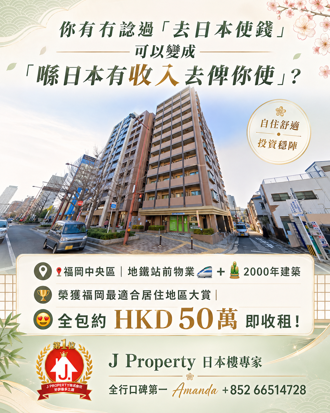 福岡中央區,站前1分鐘收租盤 榮獲福岡最適合居住地區大賞|大濠公園生活圈 2000年建築+地鐵站前物業 徒步1分鐘即到「唐人町」站 ,連租約出售,約 HKD 50萬全包 即買即收租