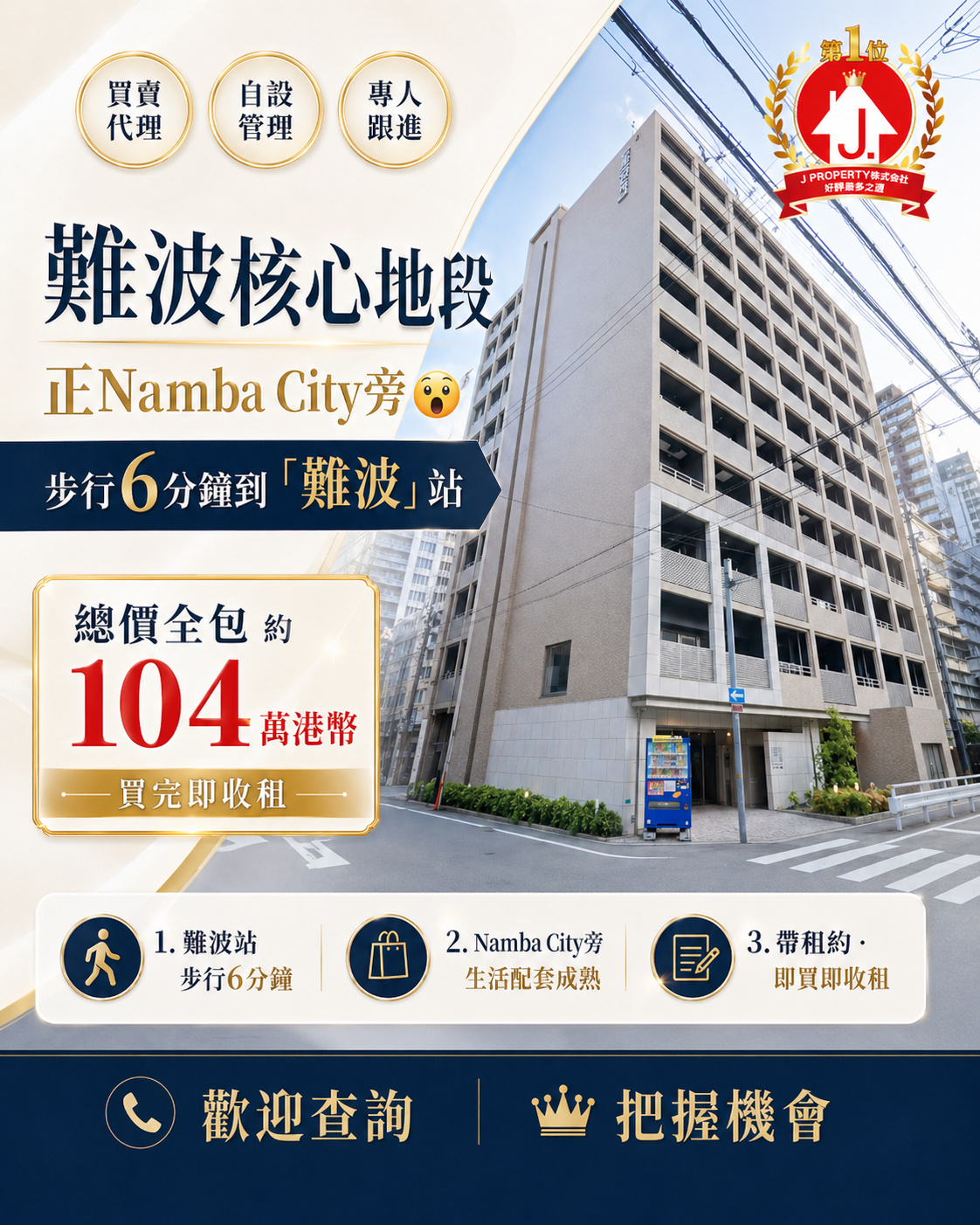 【這位置無可取代 即買即收租】手快有手慢無 大阪(係正Namba City旁) 步行6分鐘「難波」站正正市中心單位 總價全包$104萬港幣即收租