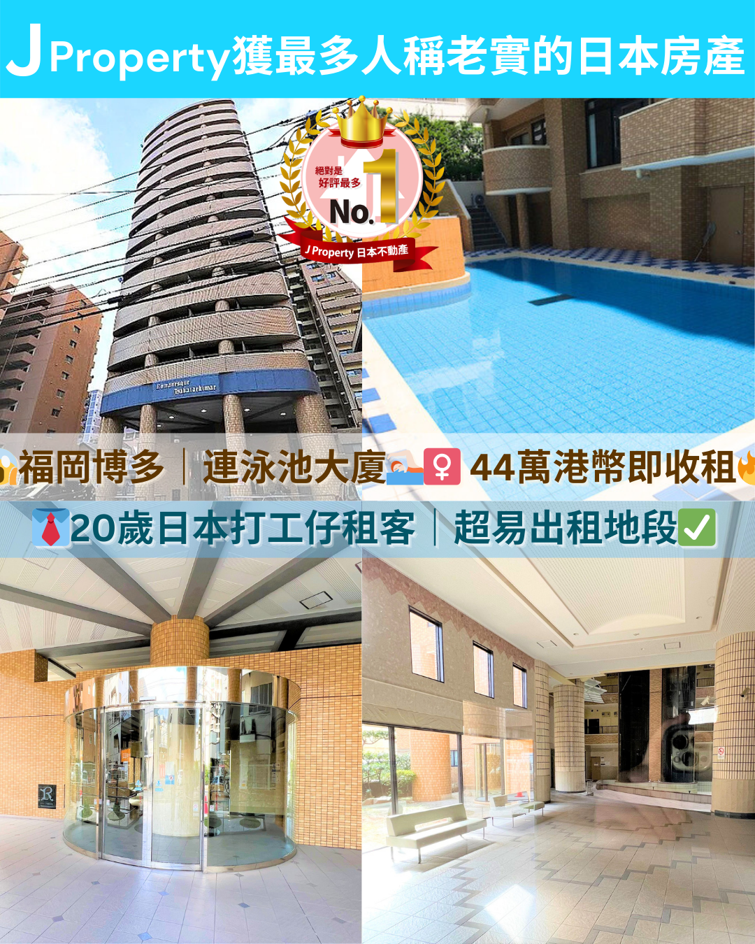【福岡博多|連泳池大廈, 44萬港幣即收租】 九州最大車站正市中心「博多」,15層中高層7樓|收租單位 ,20歲日本打工仔租客|超易出租地段,全包總價約 HKD 44萬 ,實際回報 6.6%|月租 ¥50,000