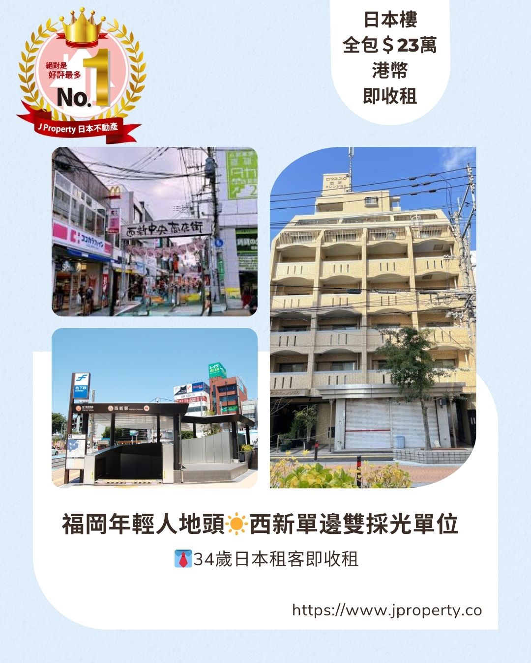 【日本樓全包$23萬港幣即收租】 福岡年輕人地頭,西新單邊雙採光單位 ,34歲日本租客即收租,一線直達天神、博多、機場