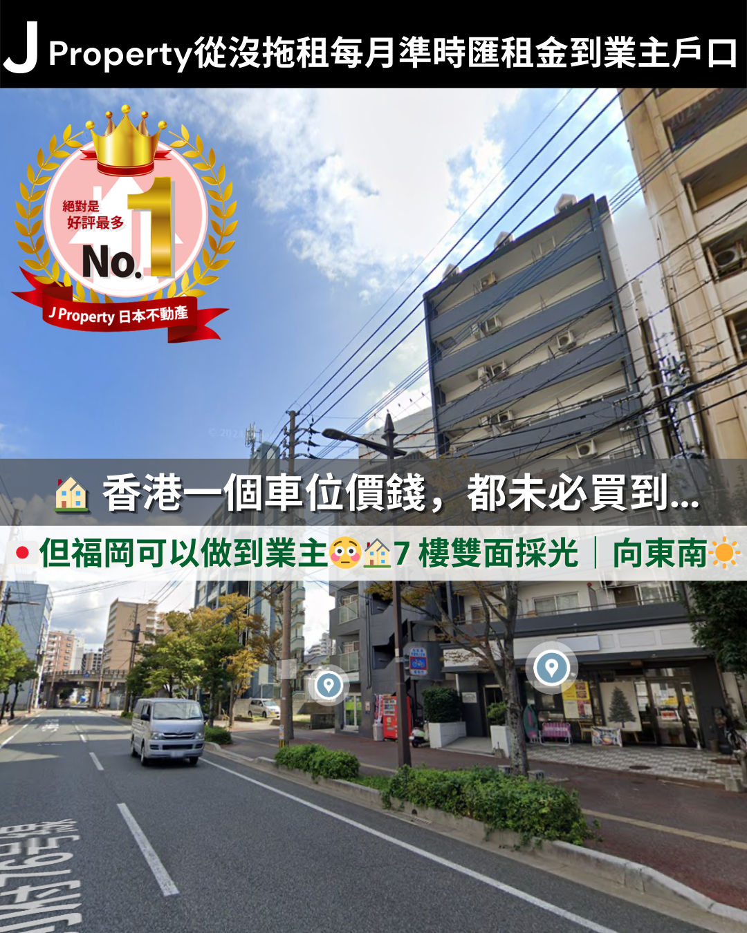 【現金流先係最自由|大濠公園 6 分鐘即收租】 福岡大濠公園生活圈 ,2005年大廈|兩面採光,30歲女租客(會社員)|即買即收租,全包總價 HKD 75 萬 落樓對面就係藥妝+7仔,生活方便到離譜