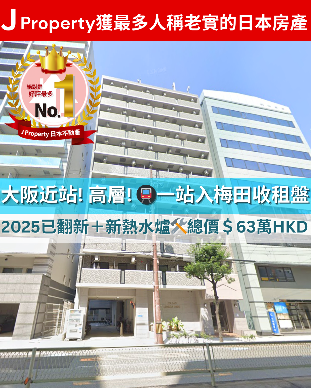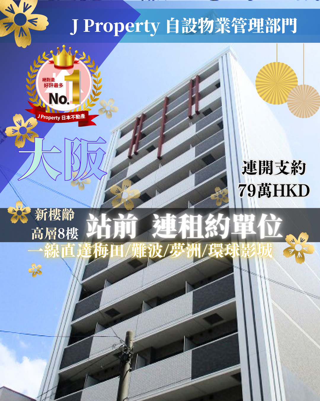 【大阪站前地鐵物業,一線直達梅田/難波/夢洲/環球影城】 新樓齡優質盤,高層8樓,連租約即收租,約連開支79萬HKD