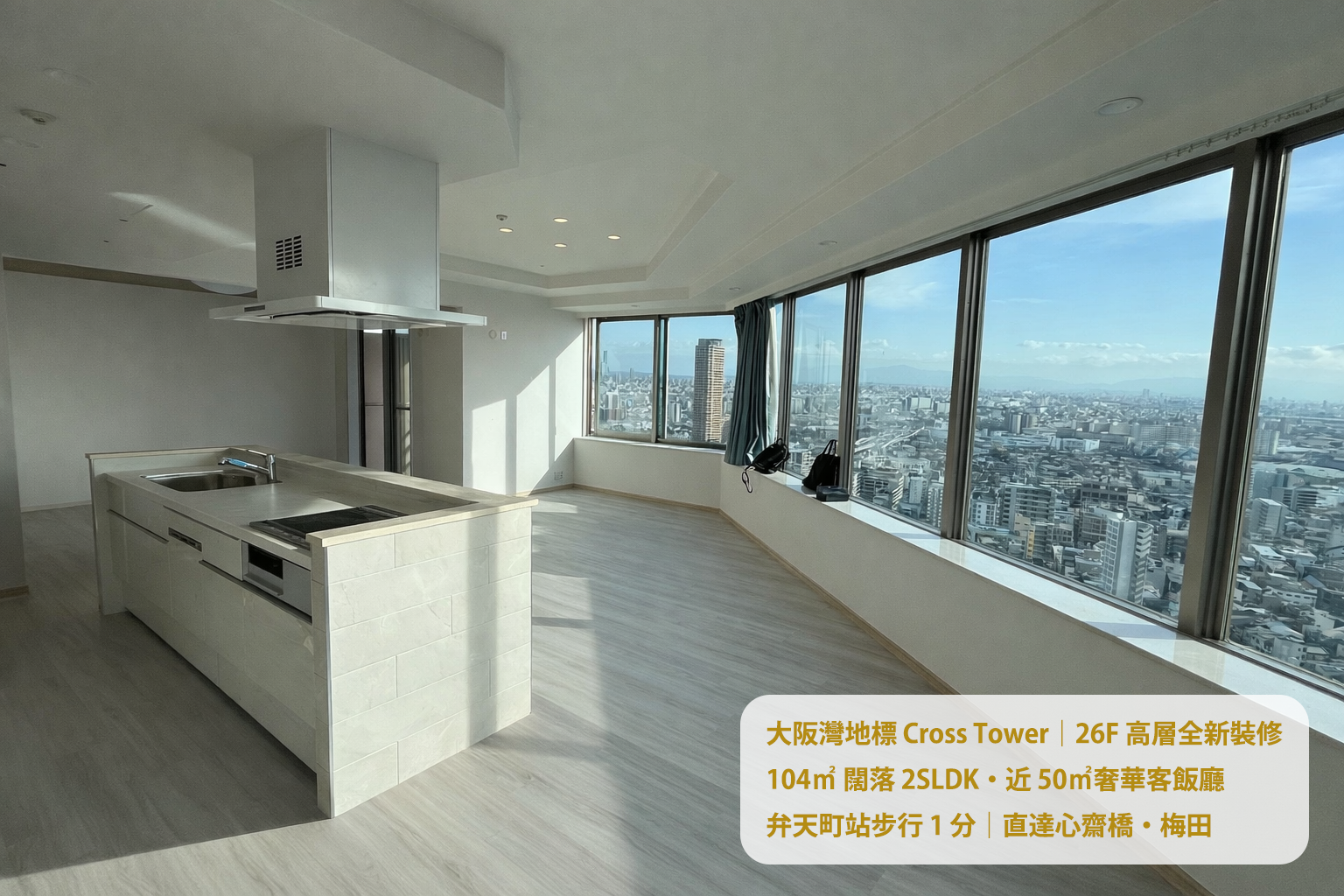 【日本Tower Mansin專家】 地標式豪宅 高樓層向西南 全新裝修 2SLDK 行1分即到弁天町站 分別直達心齋橋、梅田、夢洲賭場!