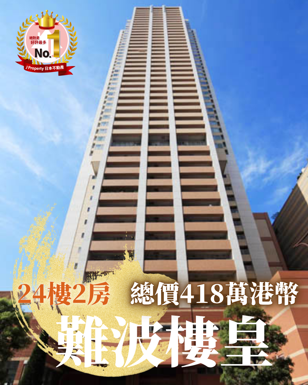 【大阪難波樓皇】【WhatsApp我拎室內相啦】 大阪難波,難波PARKS+難波站相連塔樓 2LDK,中高層24樓,總價418萬港幣