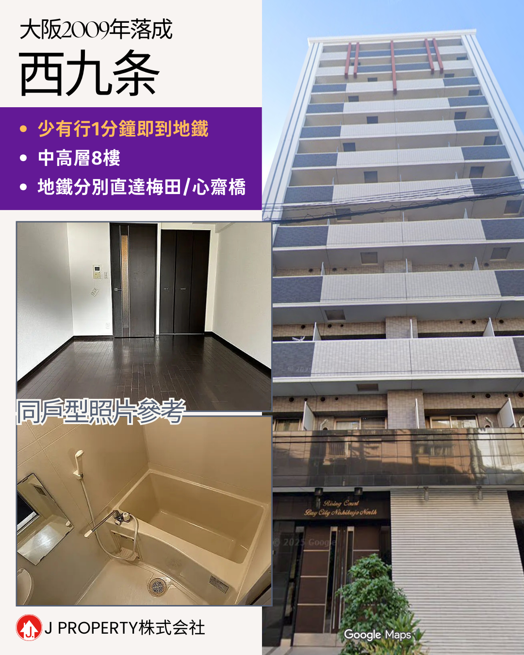 J Property總部在大阪難波,是日本當地地產, 大阪西區3房單位,一站2分鐘到「本町」站,旁邊是心齋橋, 連租約,連開支只需HKD123萬