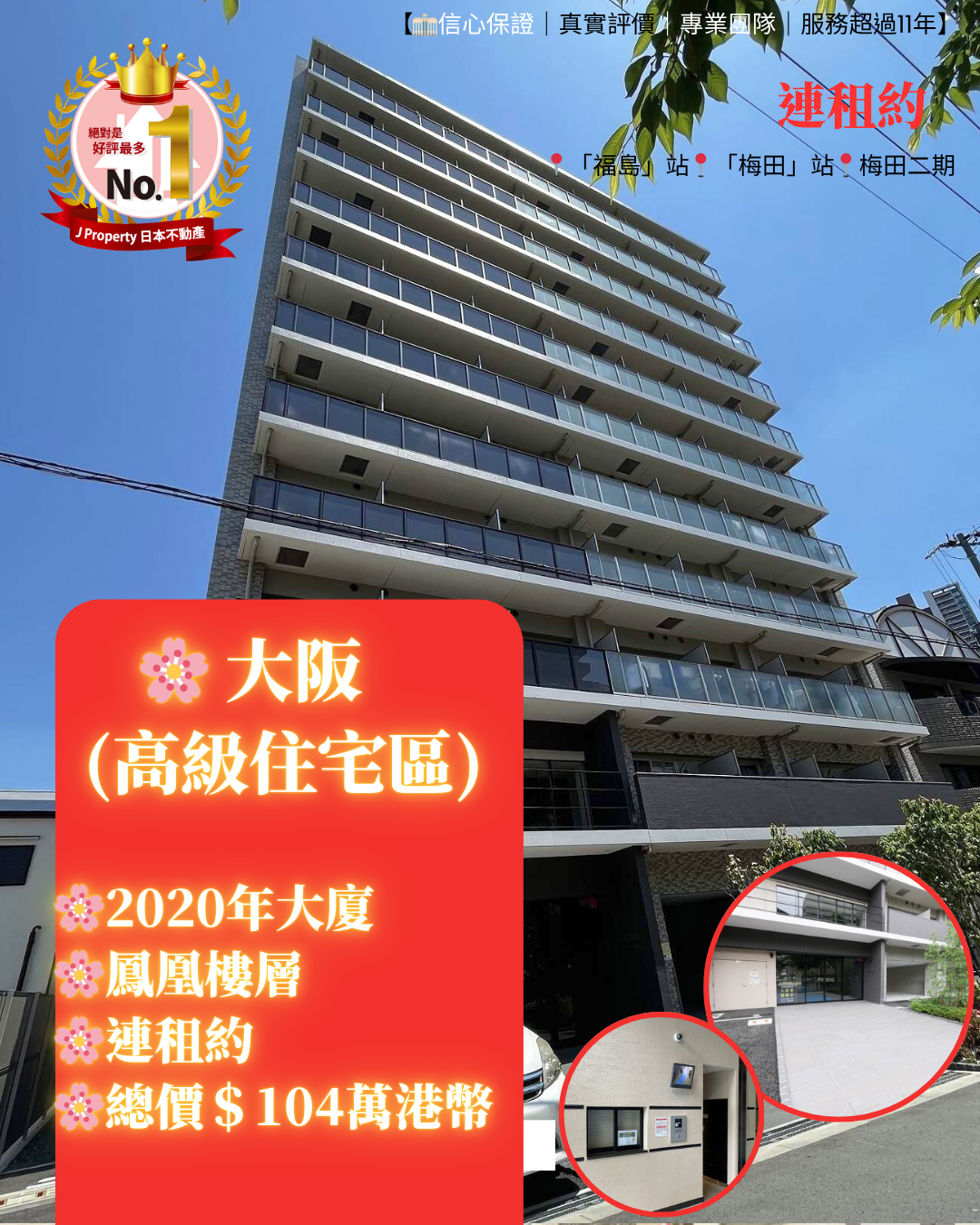 大阪(高級住宅區),2020年大廈,鳳凰樓層 連租約售總價$104萬港幣 「梅田」站,梅田二期