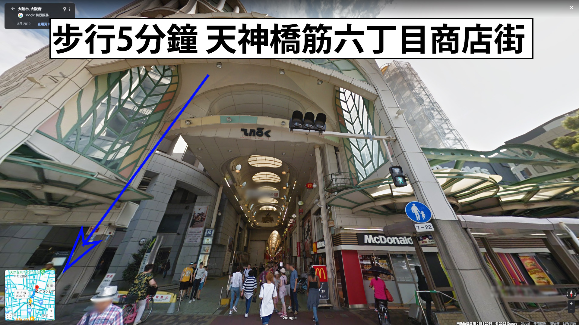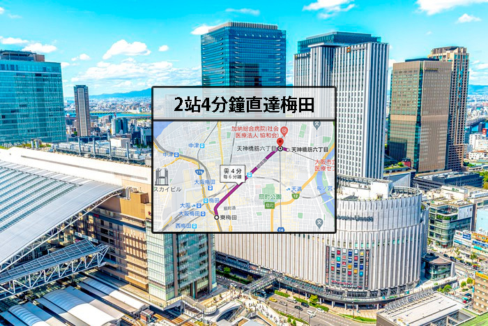 大廈徒步3分鐘到「天神橋筋六丁目」站,2站4分鐘直達梅田