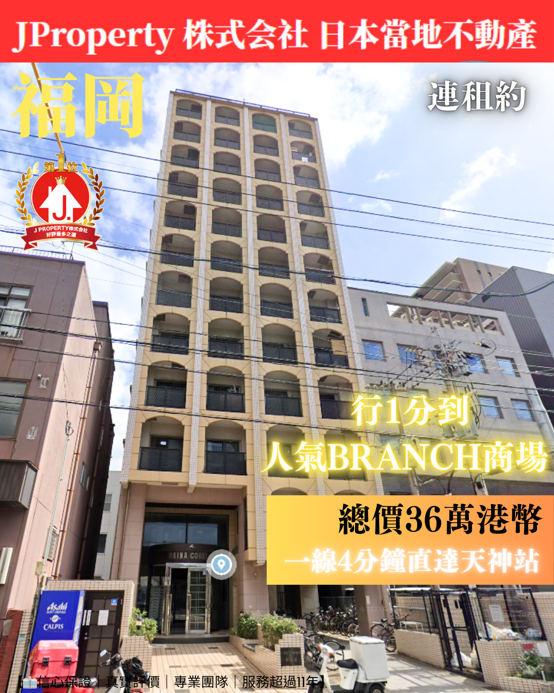 福岡(博多區,步行2分到地鐵,鐵路4 分鐘到天神站) 高層,90後大廈,有保證會社租約 全包$36萬港幣咋