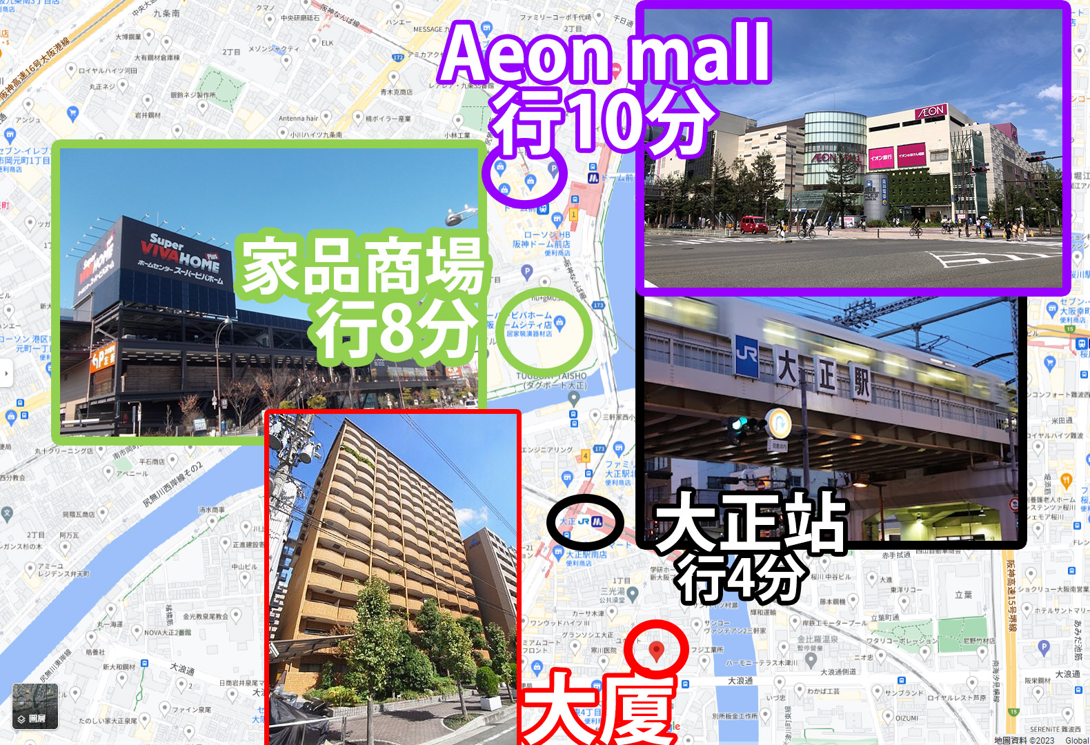 - 步行3分鐘到「大正」站,附近有超市、便利店,步行10分鐘到AEON大型購物中心和超大型家居用品商場;