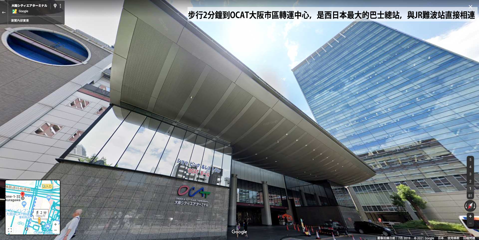 機場直達「難波」站最市中心,出站步行3分鐘即到大廈