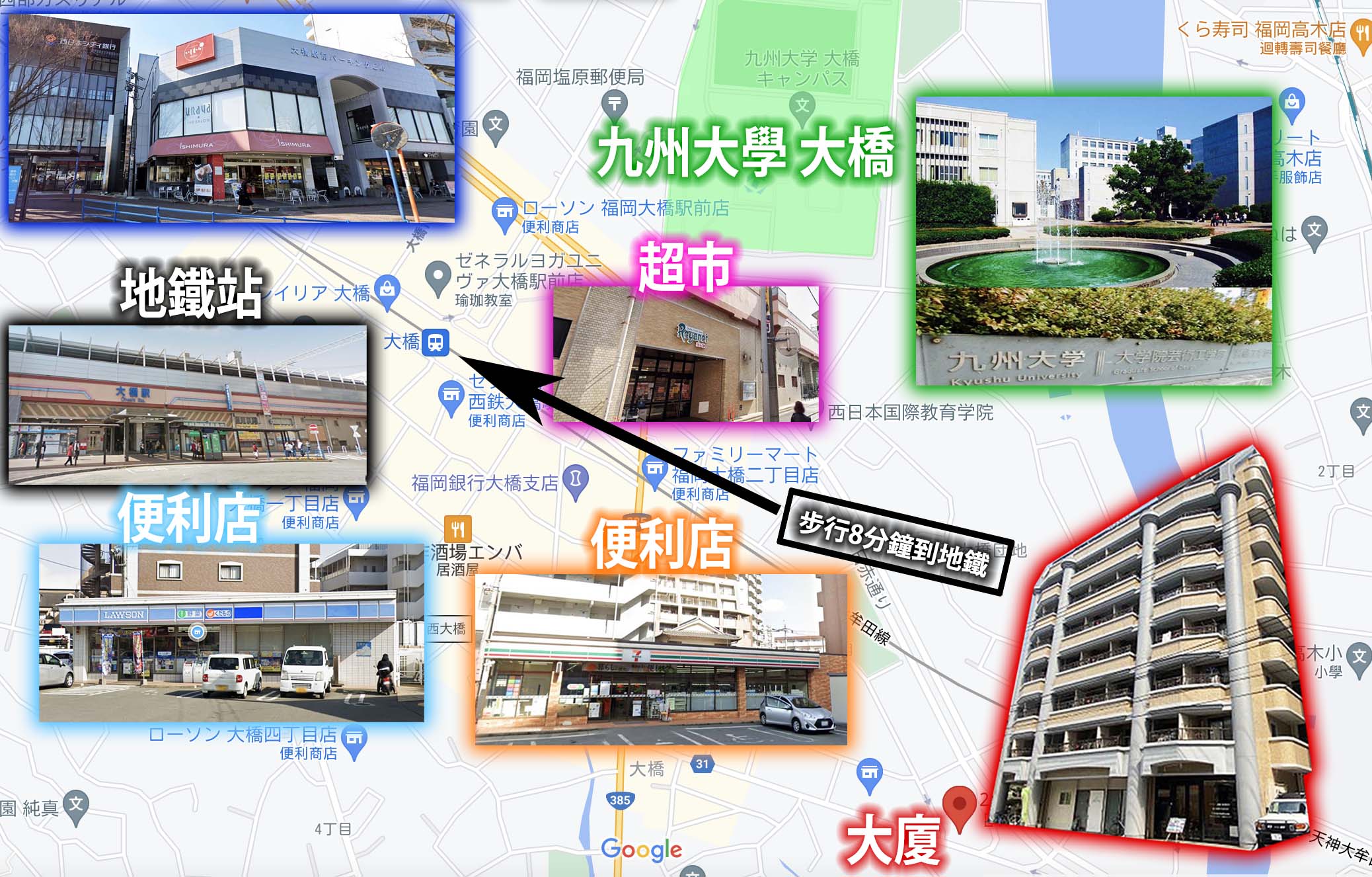 - 大廈步行10分鐘到「九州大學 大橋」,出租一流;