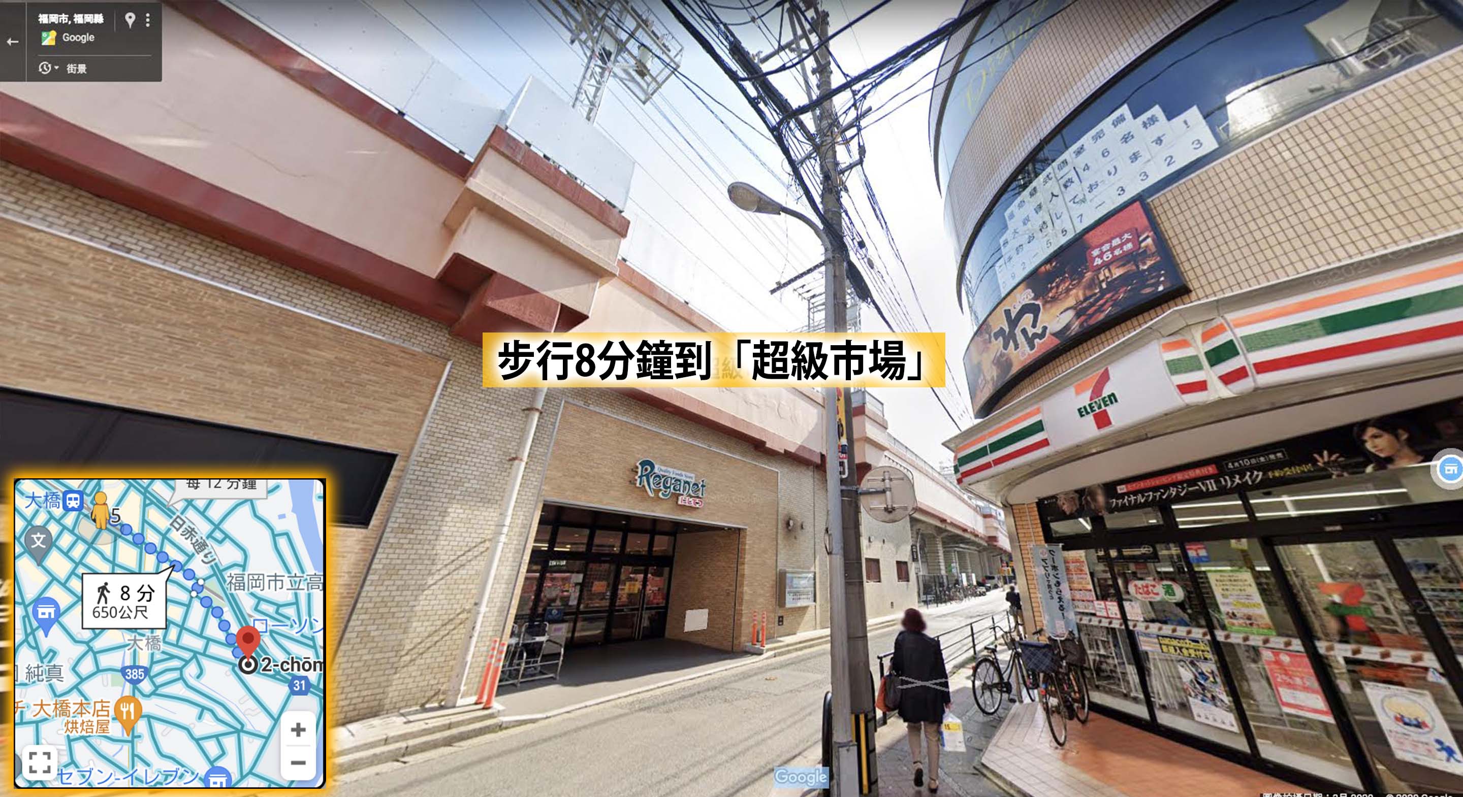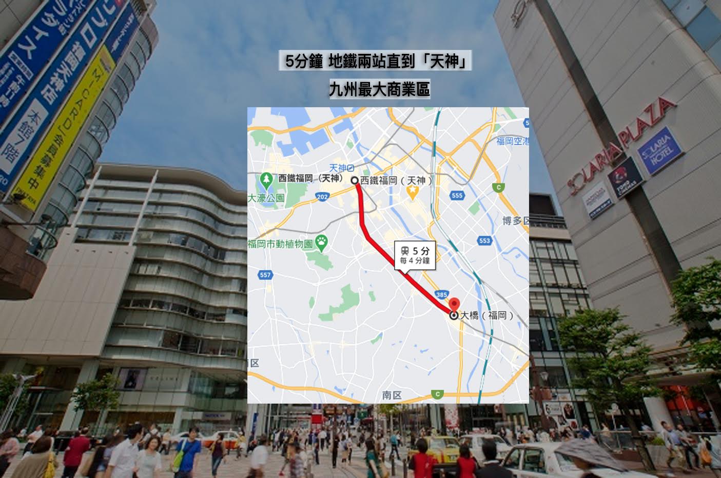 - 步行8分鐘到「大橋」站,2站即到九州最大商業區「天神」;