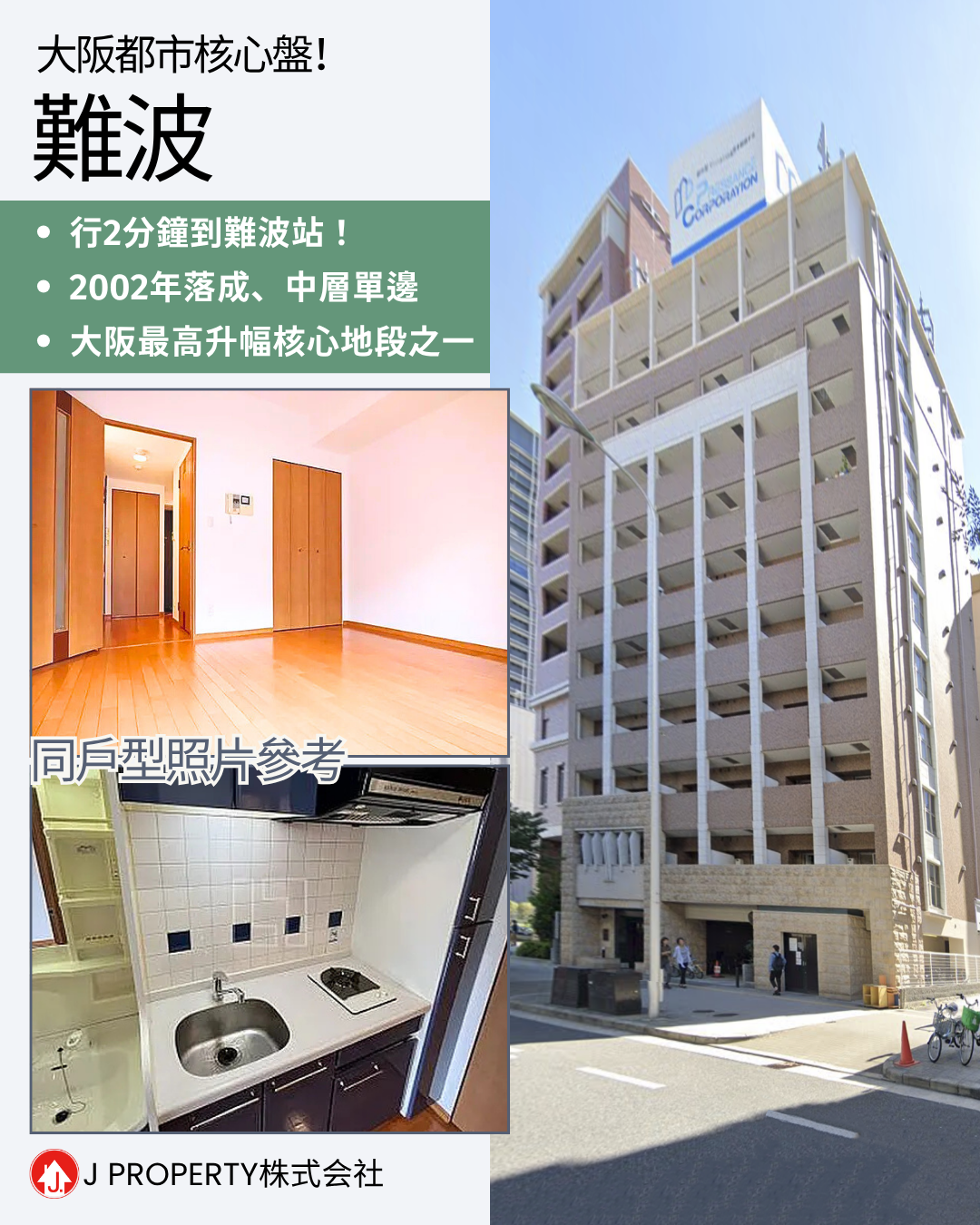 【大阪難波站旁2分鐘物件】 大阪中心地帶,步行2分鐘即到「難波」站,現成租約在手,月月收租, 總價只需約 HK$83萬,超低價買到日本市中心大廈單位
