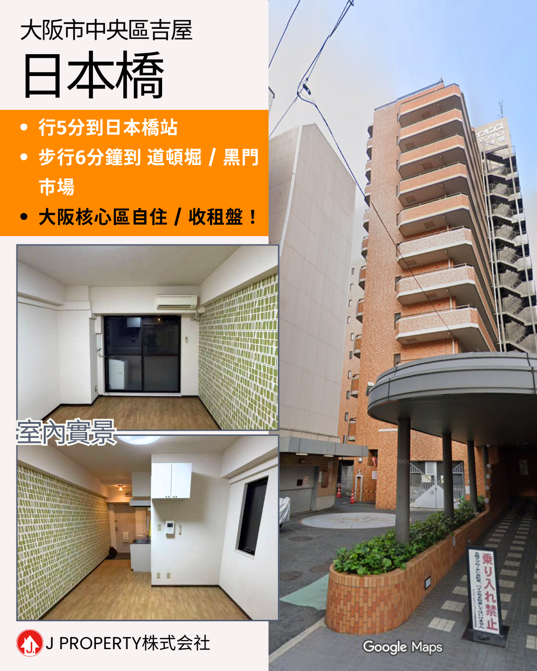 【黑門市場、道頓堀附近】 步行5分鐘日本橋站,行步6分鐘「黑門市場」 吉屋,出租 / 自住兩用,連開支47萬港幣