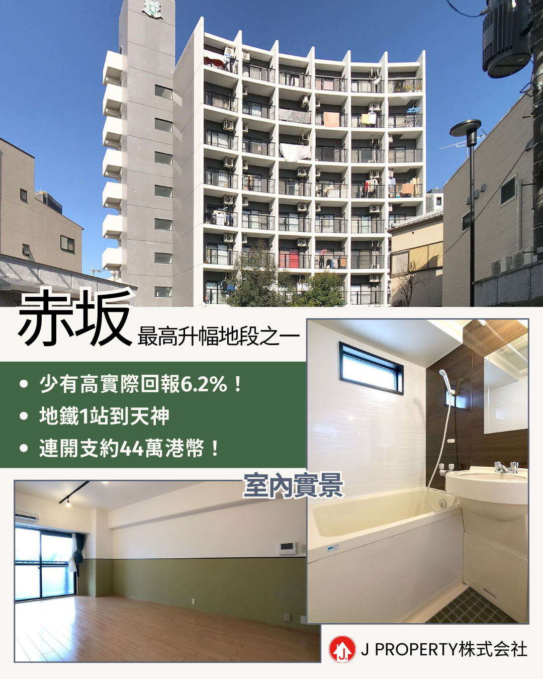 - 大廈步行10分鐘到「赤坂」地鐵站,周邊全是商埸,重點商業區,投資必勝;
