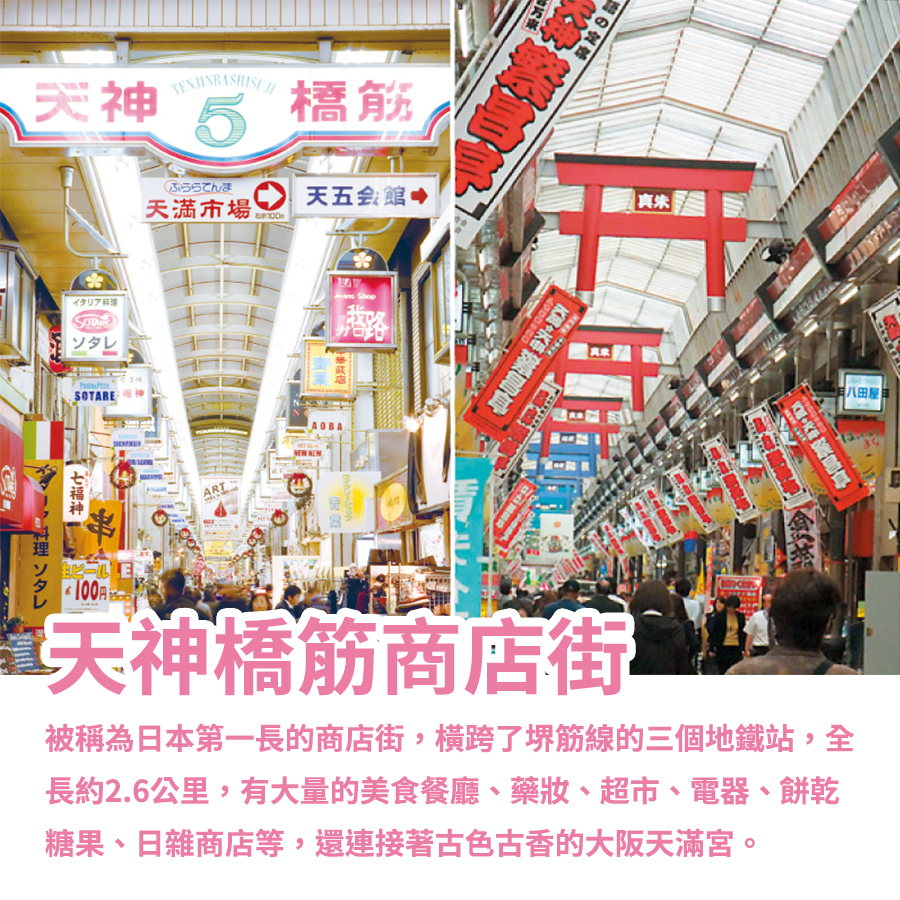 大廈步行6分鐘到大阪最長商店街「天神橋筋商店街」,日本人最愛商店街之