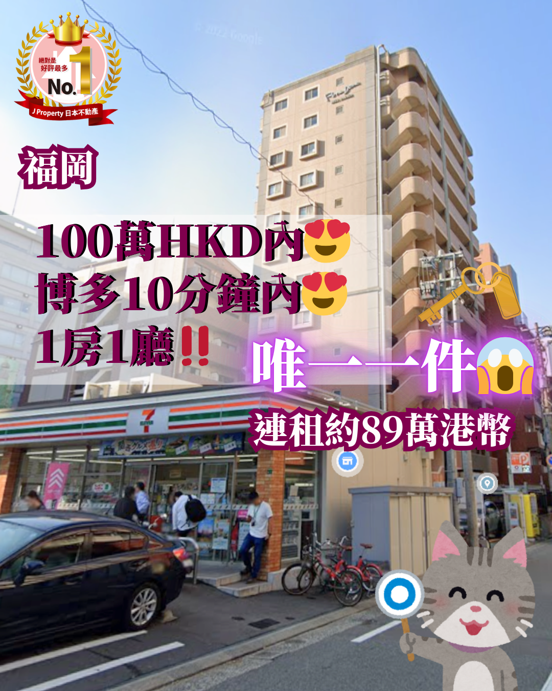 福岡九州最大車站,博多收租靚單位,2000年後大廈,100萬HKD內,博多10分鐘內,1房1廳,唯一一件放盤,全包先89萬港幣炸