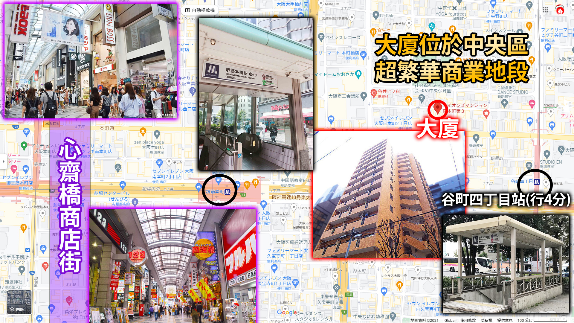 行4分到「谷町四丁目」站,4分鐘直達「本町」站到達心齋橋,11直達「梅田」站,超方便;