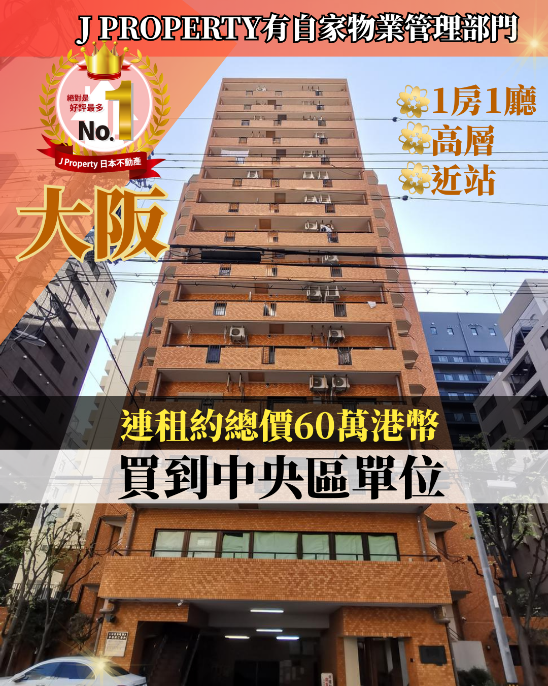 大阪市核心位置高層8樓,1房1廳,有適合長期持有;
