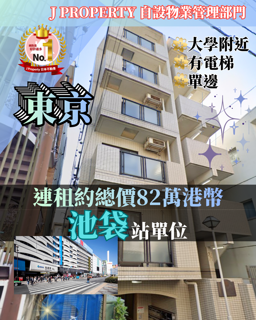 東京池袋站單位,極罕位置, 大學附近 有電梯單邊單位,租客最愛, 連租約即收租,總價$82萬港幣