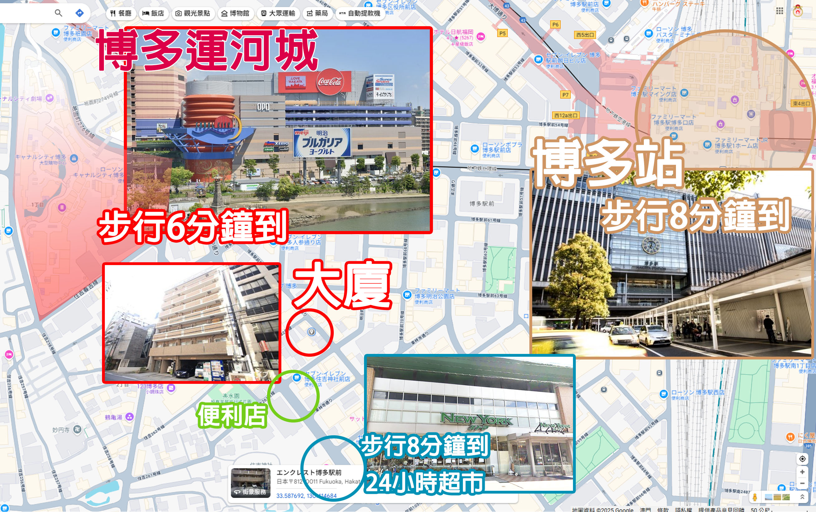 | 交通 | 徒步8分鐘 到 博多站 |