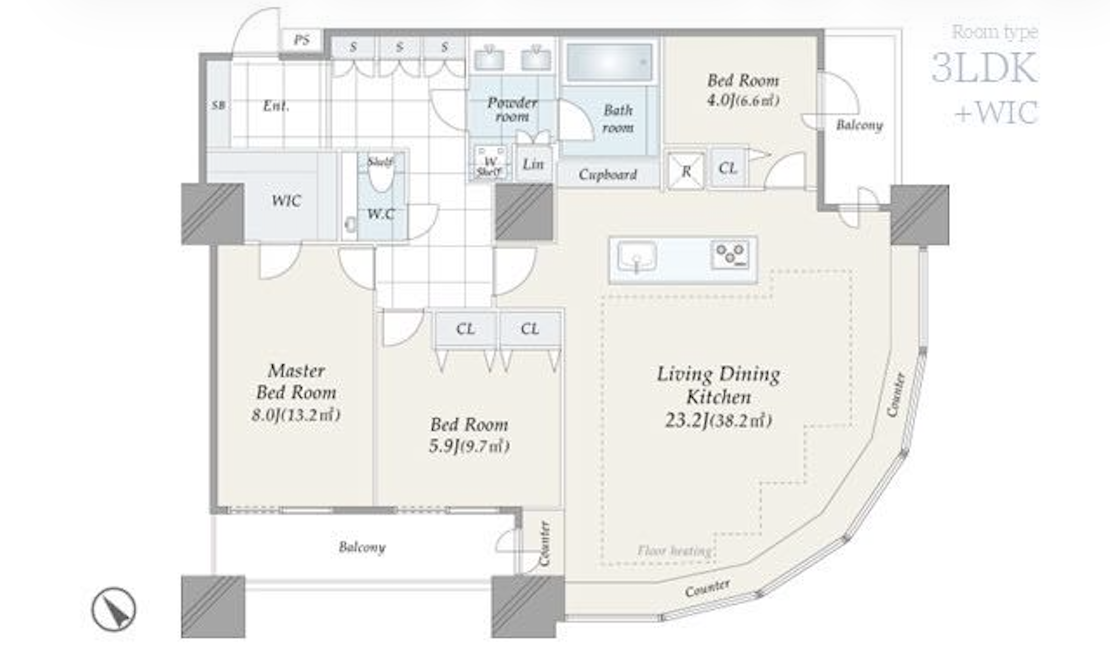 單位面積約 1,129呎,屬東京市中心非常有份量嘅大宅級數。