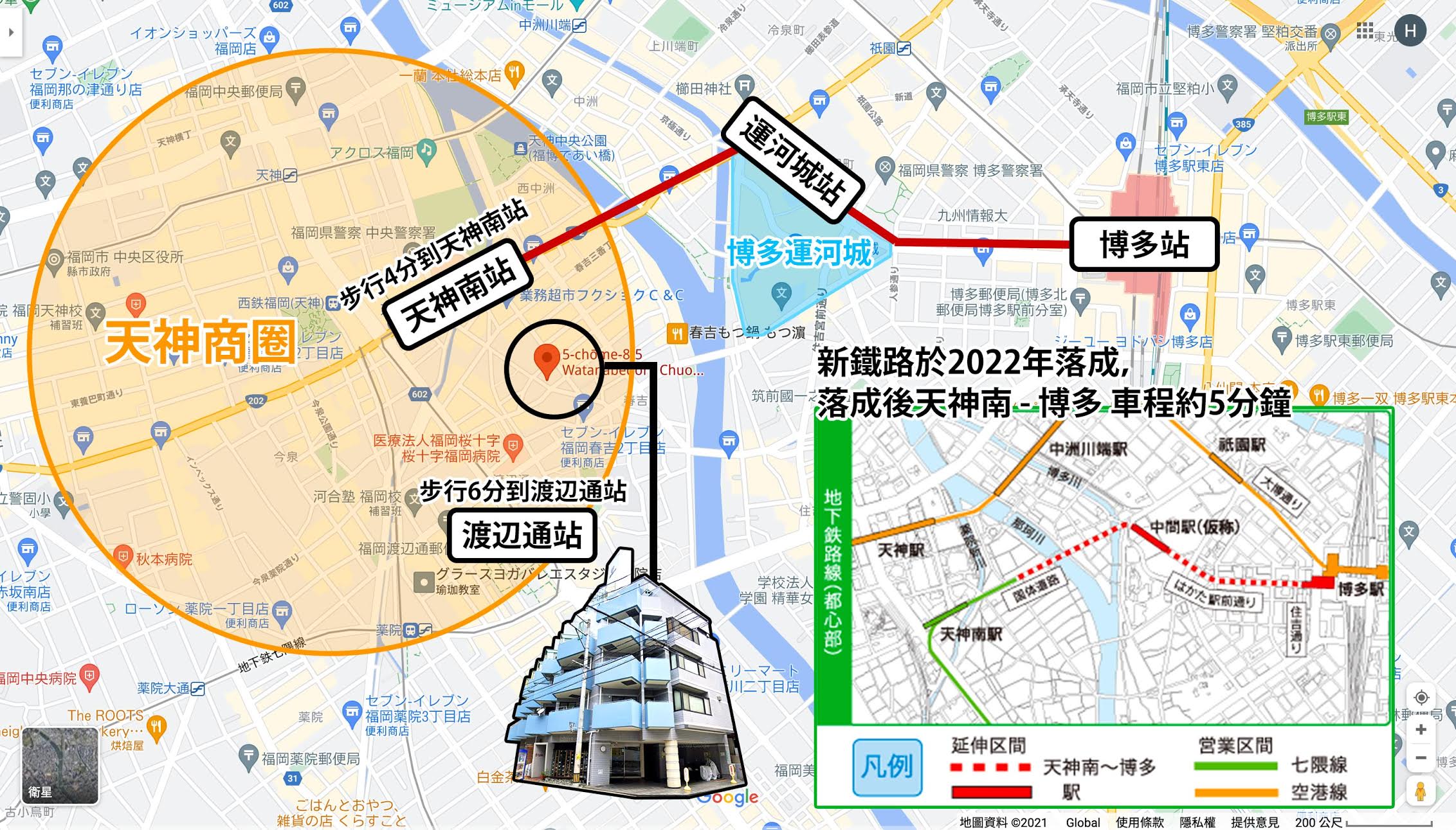 - 大廈徒步6分鐘到「天神南」站,入面就是天神地下街,連接著天神站,出租率極好;