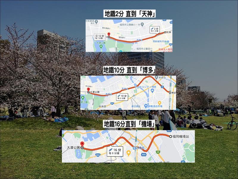 大濠搭2站到「天神」,4站到「博多」,6站到「機場」
