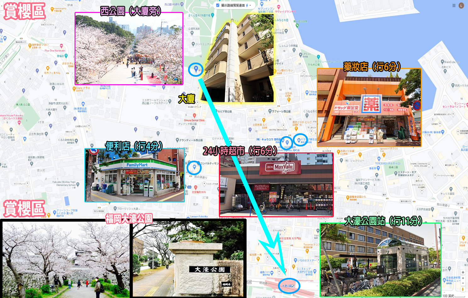 - 大廈旁邊就是福岡縣內唯一入選「日本櫻花百選」的賞櫻聖地「西公園」,位置超靚;