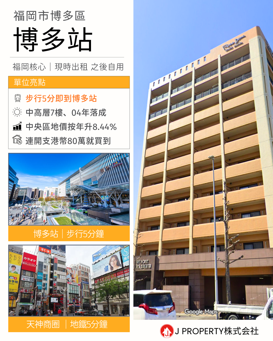 【J Property少數有自家管理部門】 福岡博多區,低入場市中心單位,總價$38萬港幣即收租