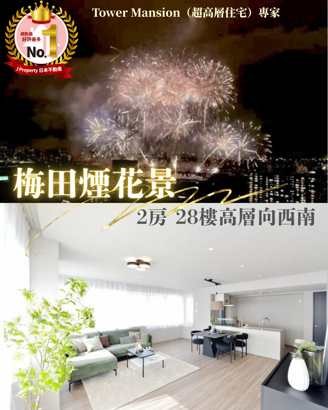 【梅田煙花景】 大阪北區,2LDK,28樓高層向西南面」樓價640萬港幣