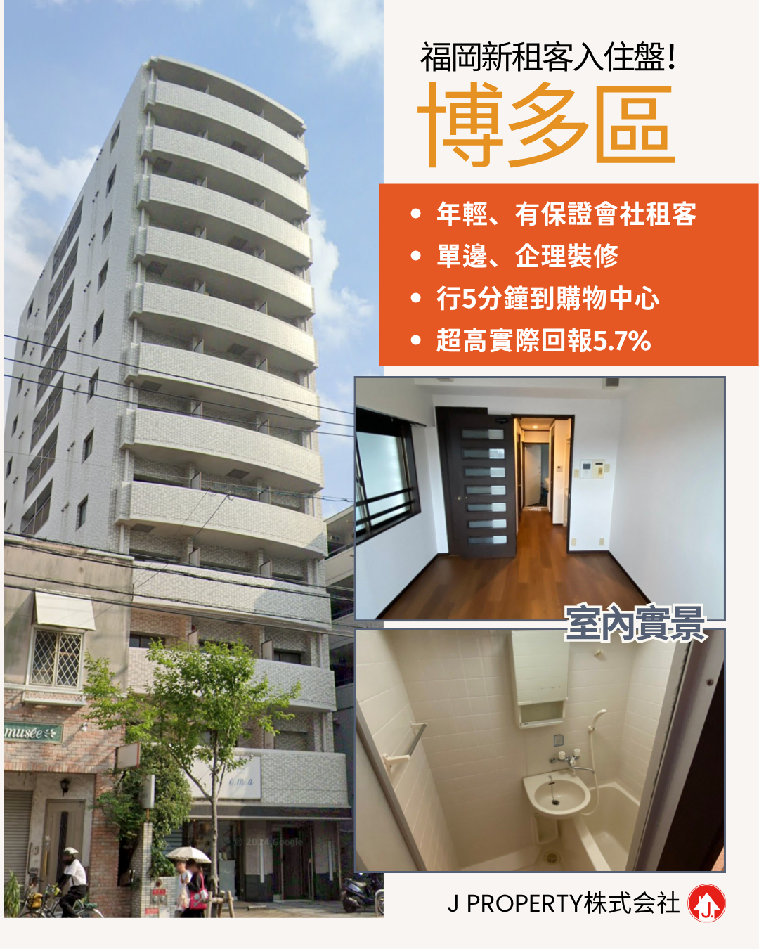 【超值博多區】【WhatsApp我拎回報表啦】 福岡市政廳附近,一站到博多 ,單邊、兩面採光,行5分鐘到露天購物中心 ,連租約,總價$36萬HKD
