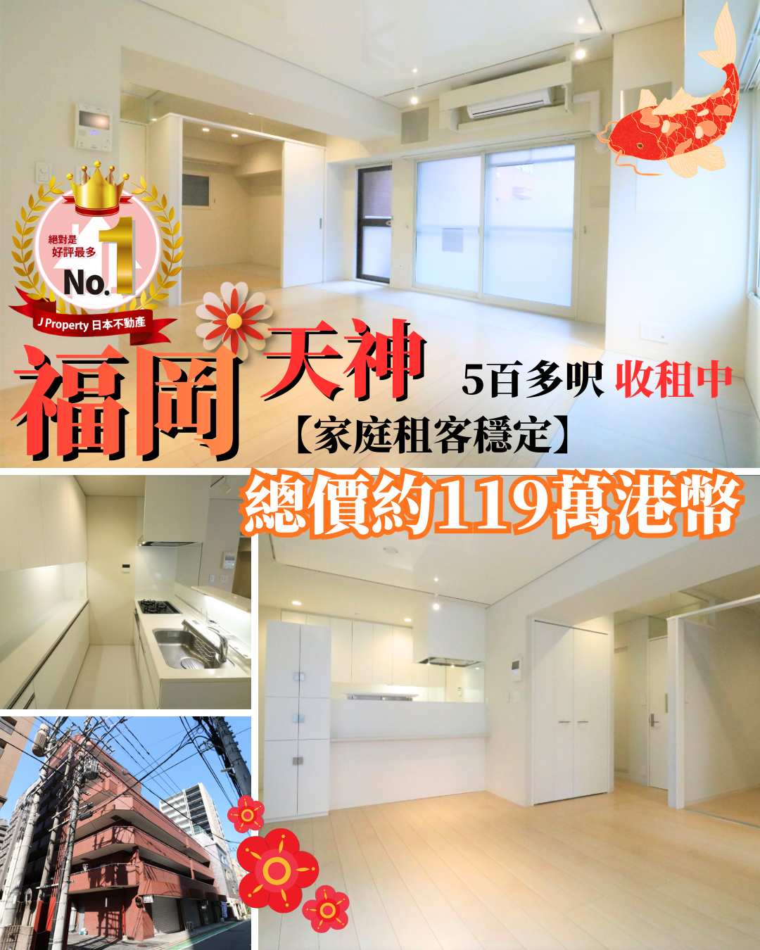 福岡九州最大車站 博多收租靚單位 10年樓齡內 博多11分鐘內 最低價 連租約 全包先93萬港幣
