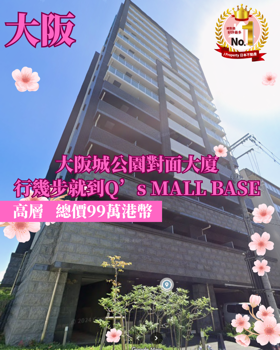 【大阪城公園對面大廈】【行幾步就到Q’s MALL BASE】 新樓齡高層單位,總價99萬港幣