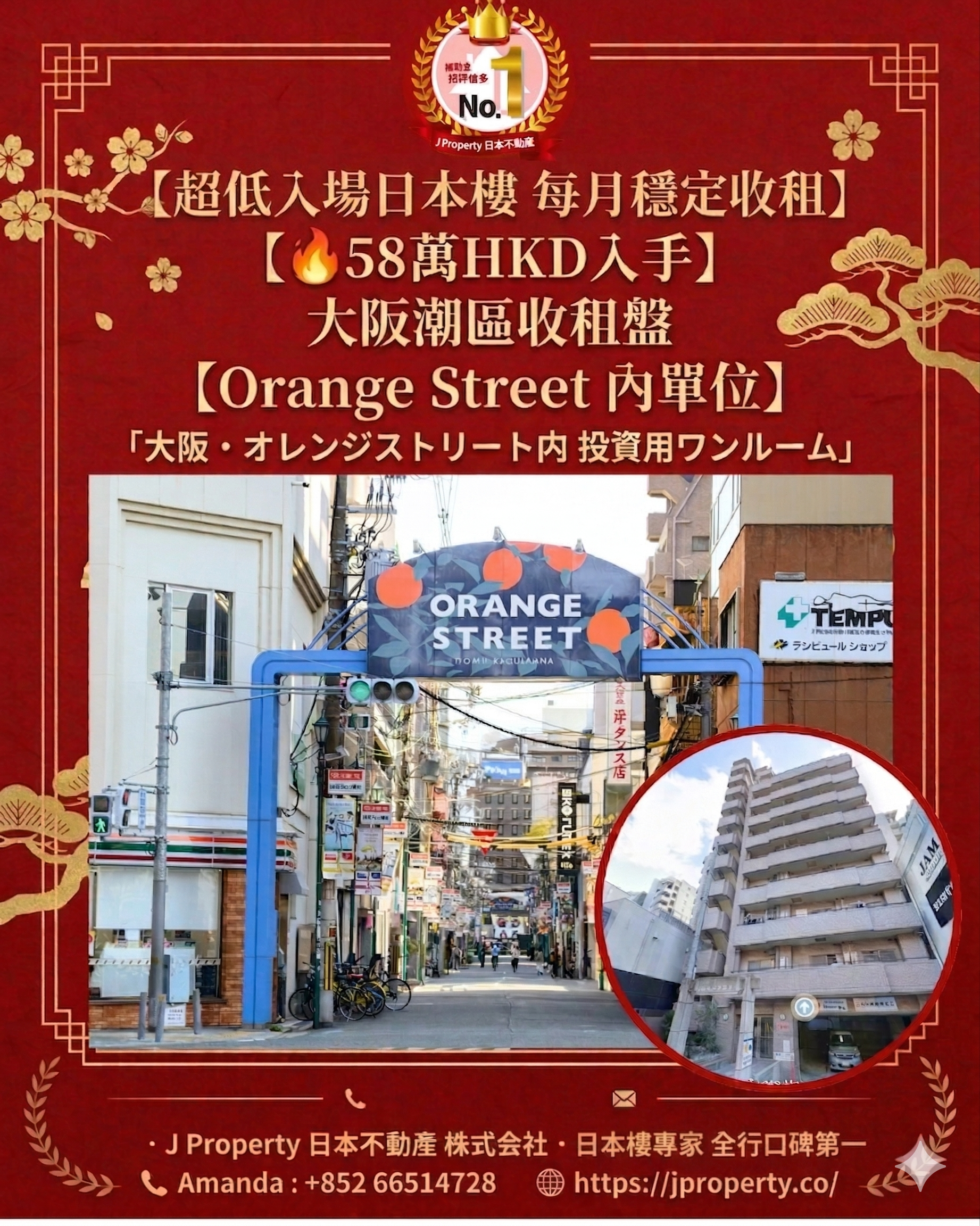【總價58萬HKD入手,大阪潮區收租盤|Orange Street 內單位】 位於潮人聖地 Orange Street 內,南堀江核心地段 ,連約出售,即買即收租