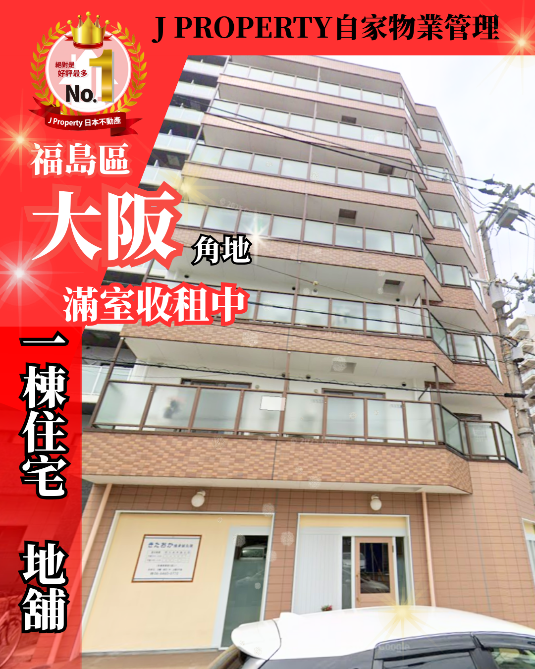 大阪・福島區|一棟住宅連地舖,新樓齡大廈 ,東×南角地(角位曝光高|街鋪更有優勢)