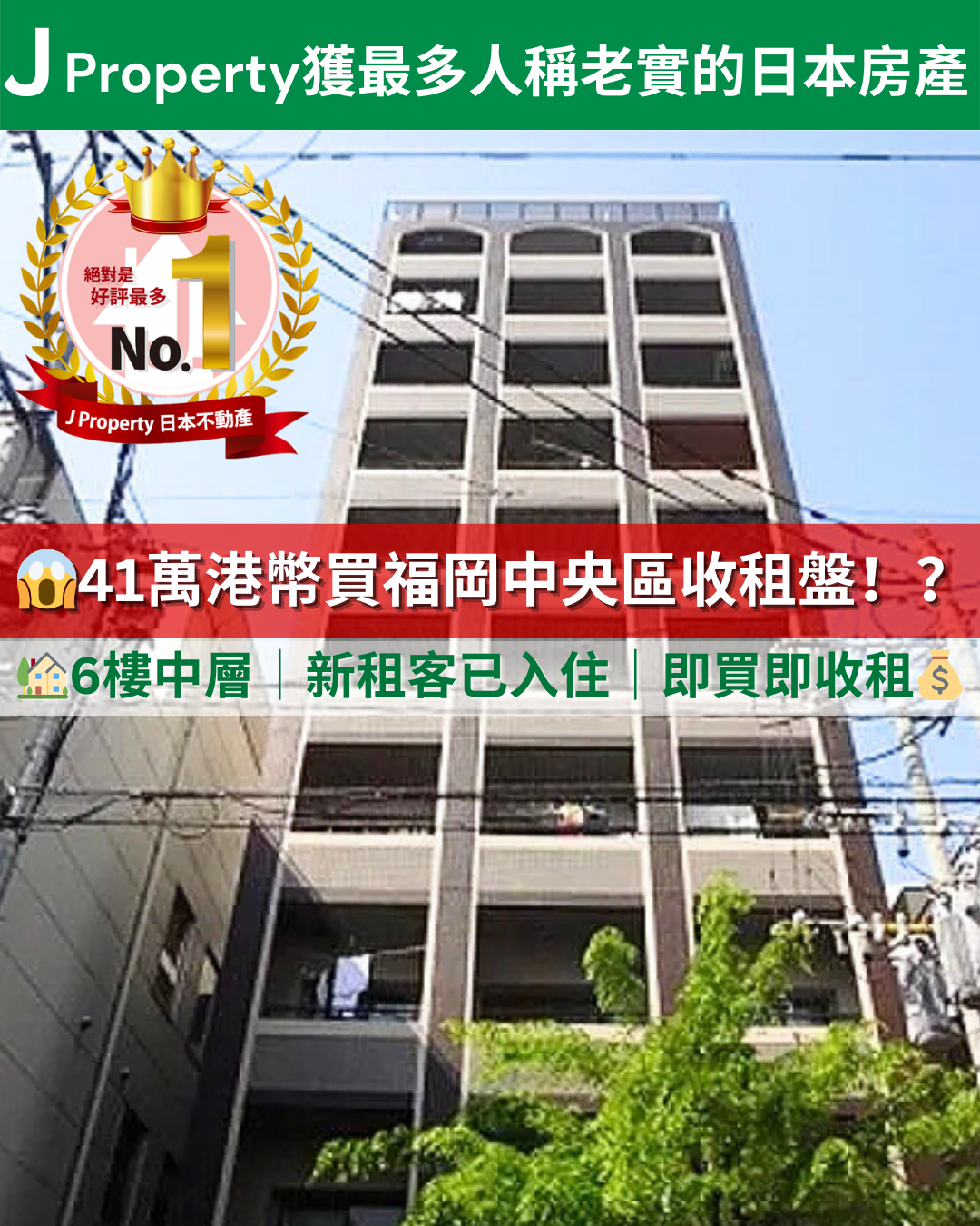 福岡市中心可以做到業主 ,六本松生活圈|徒步 2 分鐘到地鐵站,7 樓頂層|雙面採光|向東南,即買即收租|實際回報 6.1%