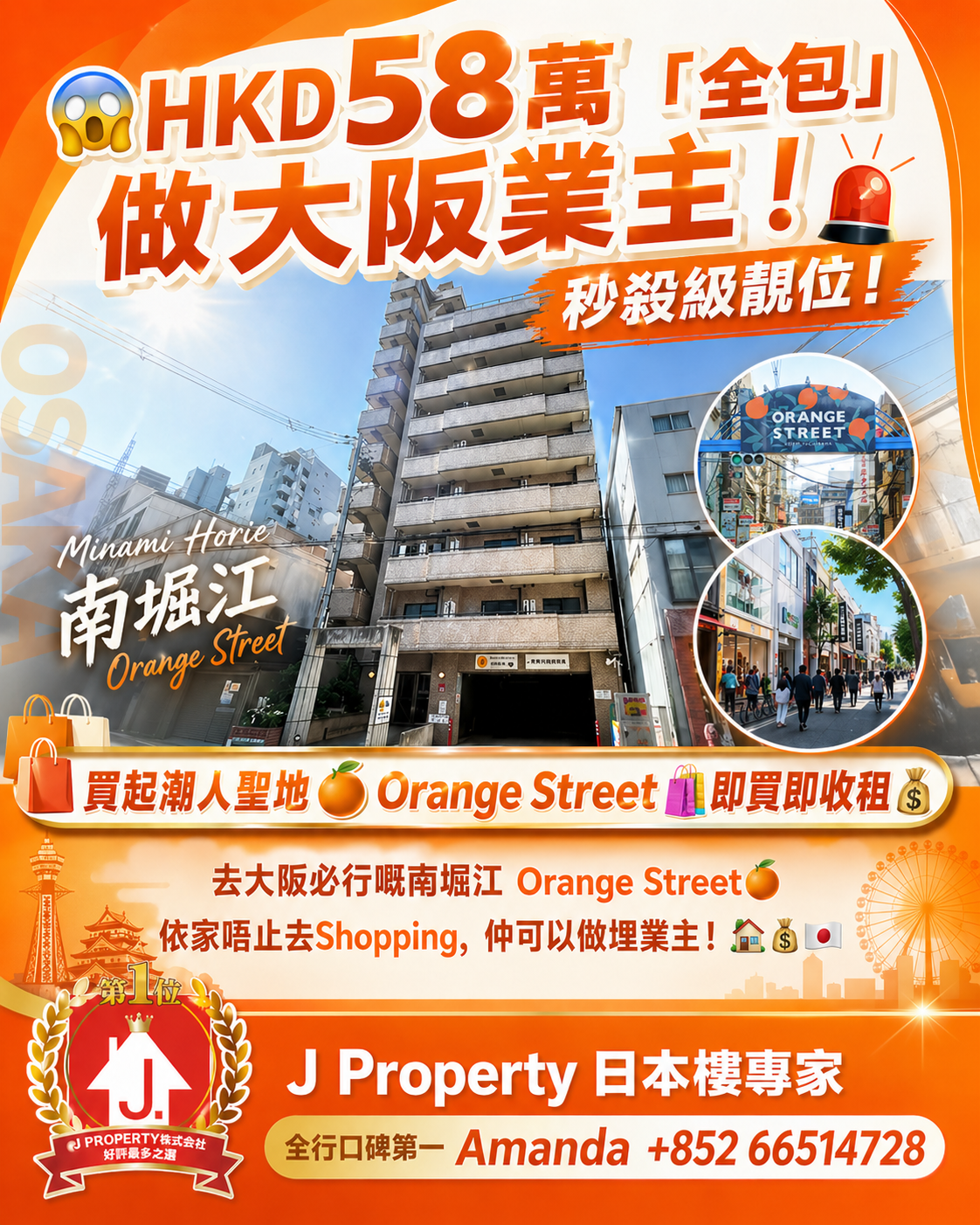 【好評最多的日本物業公司】 大阪「難波」站(可貸款) 最市中心地段無可挑剔位置,2012年樓高層,連租約全包港幣$182萬