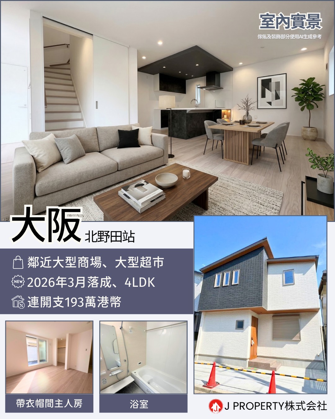 【買入屬於自己的叮噹屋最佳時機】(專人帶睇樓) 大阪「2026年3月新樓」「鄰近大型商場+大型超市」 「一線直達難波站」「4LDK連1車位」 連開支193萬港幣