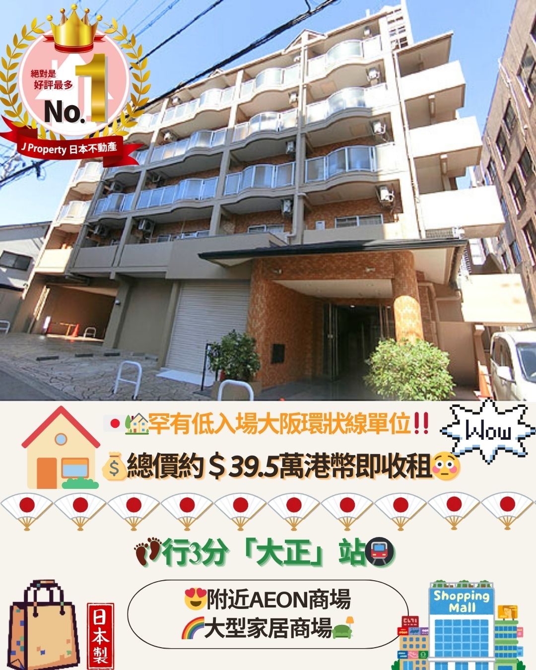 罕有低入場大阪環狀線單位,總價約$39.5萬港幣即收租,OSK3252B ,行3分「大正」站,附近AEON商場,大型家居商場