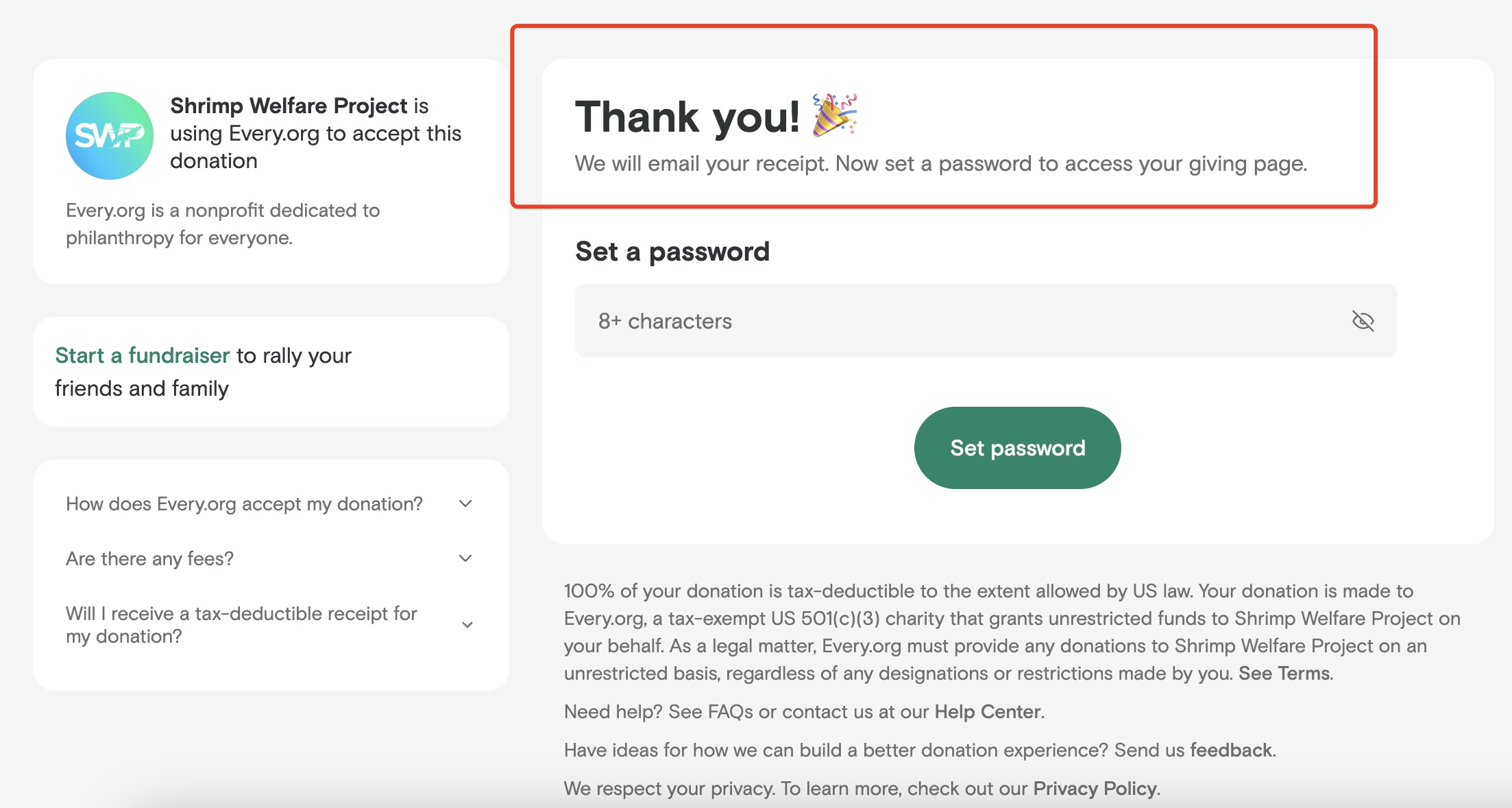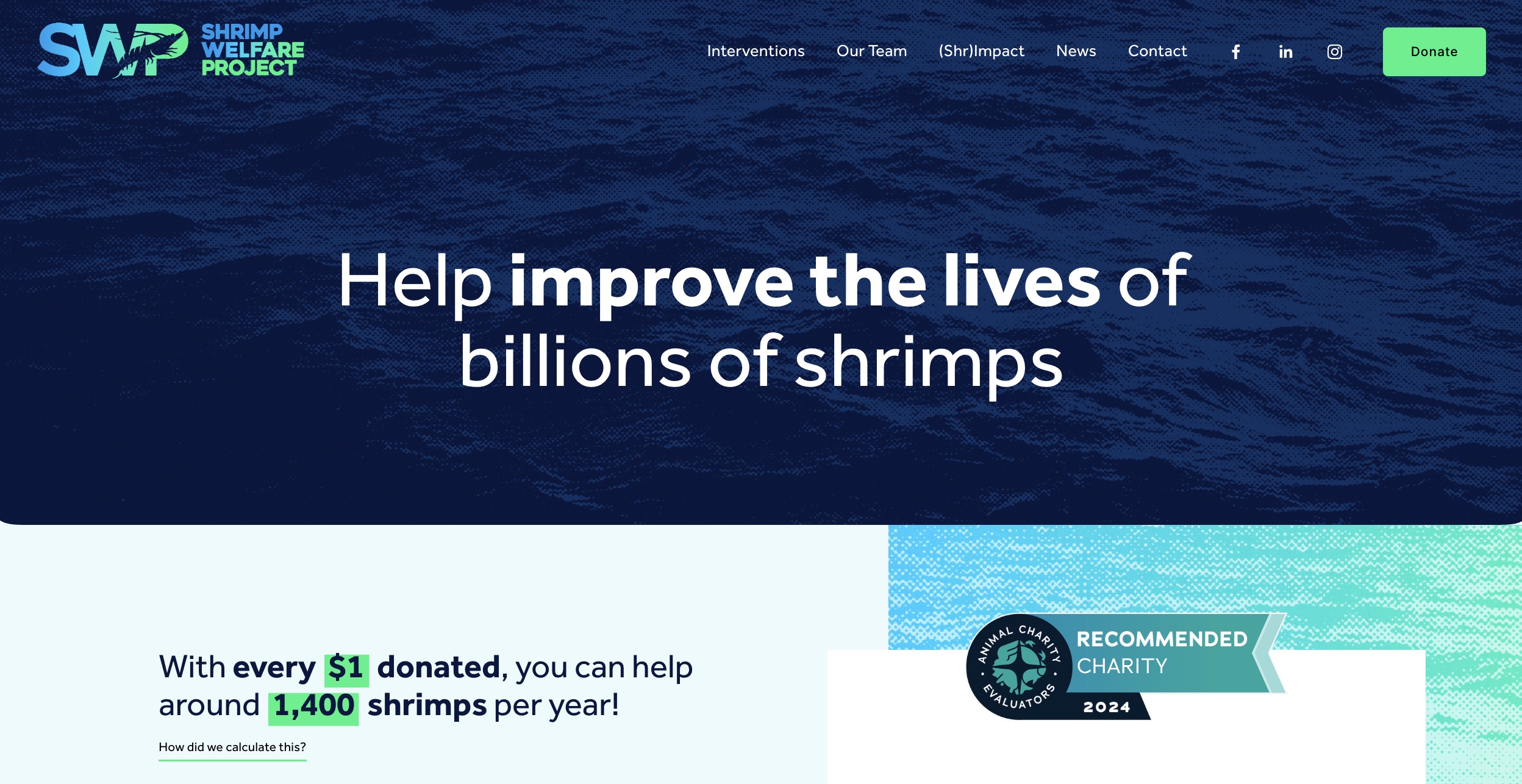 With every $1 donated, you can help around 1,400 shrimps per year!