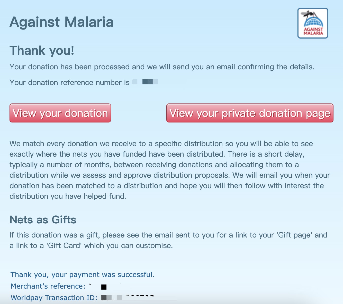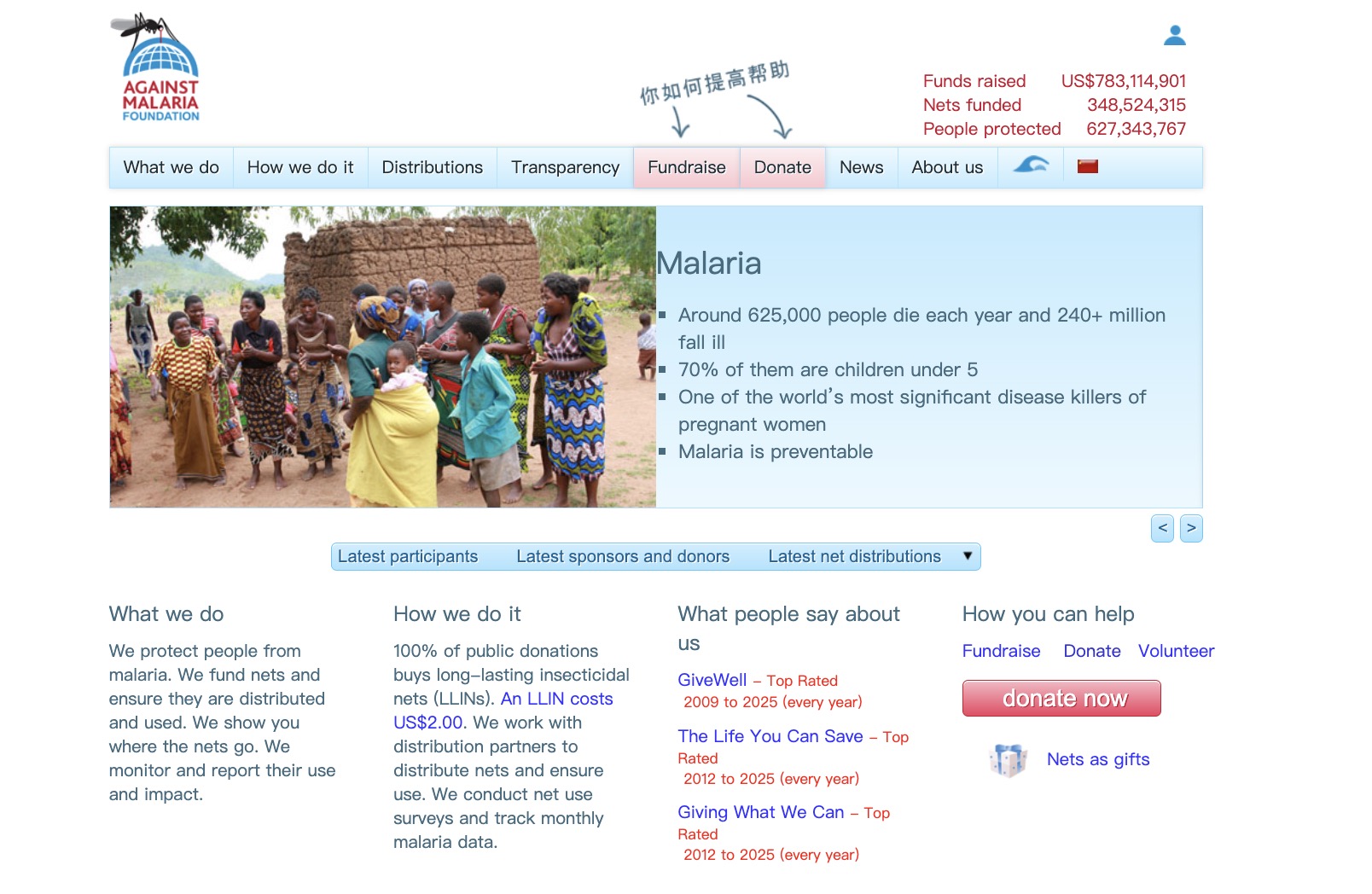 支援Against Malaria Foundation (AMF) 專注領域: 預防全球健康領域的可預防疾病