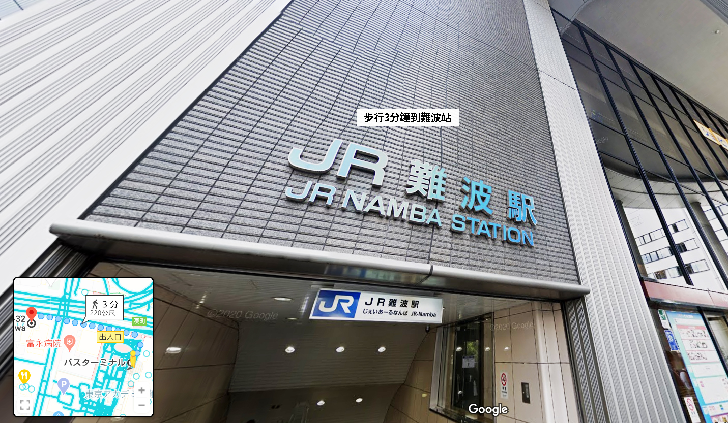 機場直達「難波」站最市中心,出站步行3分鐘即到大廈